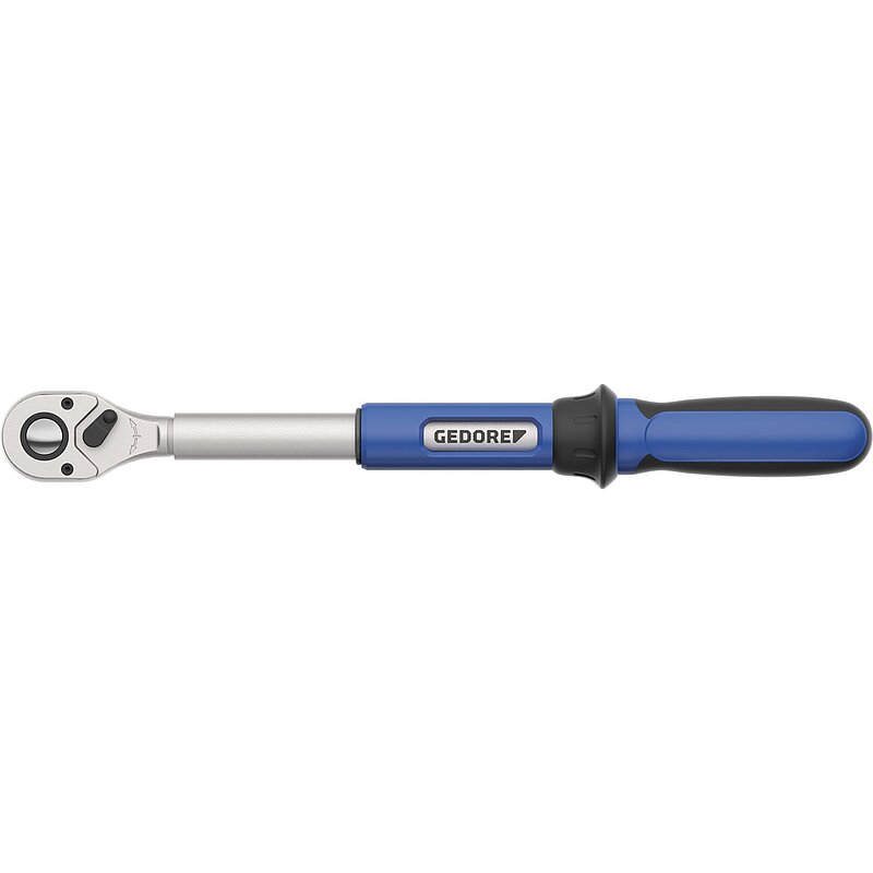 Langer Hebelarm für hohes Drehmoment, max. 600 N·m. Länge von 400 bis 600 mm in acht Rastungen verstellbar. Mit tiefergelegtem Umschalthebel. Mit Druckknopfauslösung, Rückschwenkwinkel 7,5 Grad. Rutschfester 2-Komponenten-Griff, Ratschensperre in Mittenstellung. Beim Umschalten rastet der Schalthebel automatisch für Rechts- oder Linksgang ein. Für handbetätigte Steckschlüsseleinsätze und Verbindungsteile mit Vierkantantrieb nach DIN 3120 - C 12,5, ISO 1174, mit Kugelarretierung.