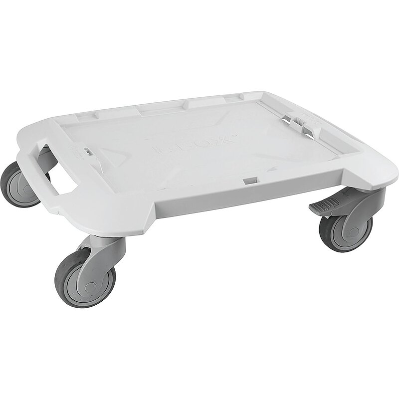 Praktische, mobile Plattform für alle L-BOXX®en. Einfach aufsetzen und verklicken. Vier Lenkrollen zur Selbstmontage, davon zwei Rollen mit Feststeller.