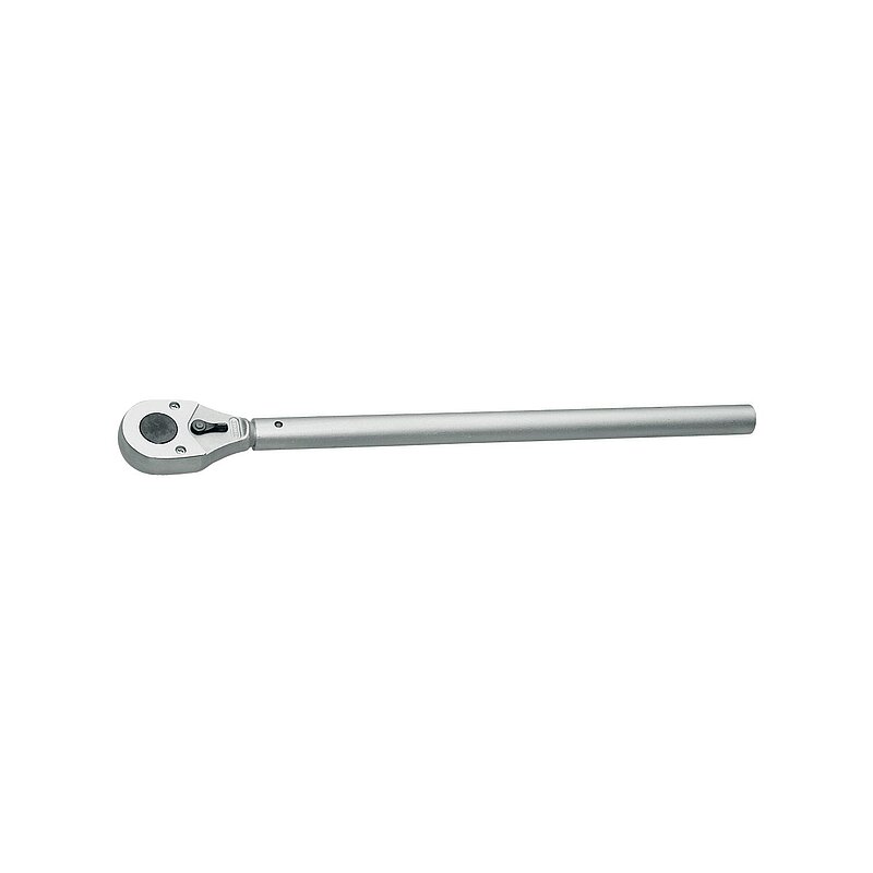 Für handbetätigte Steckschlüsseleinsätze mit Verbindungsvierkant D 20 DIN 3120 - ISO 1174, mit Stiftsicherung. Mit Umschalthebel, Arretierung bei Mittenstellung, mit Aufsteckrohr.
