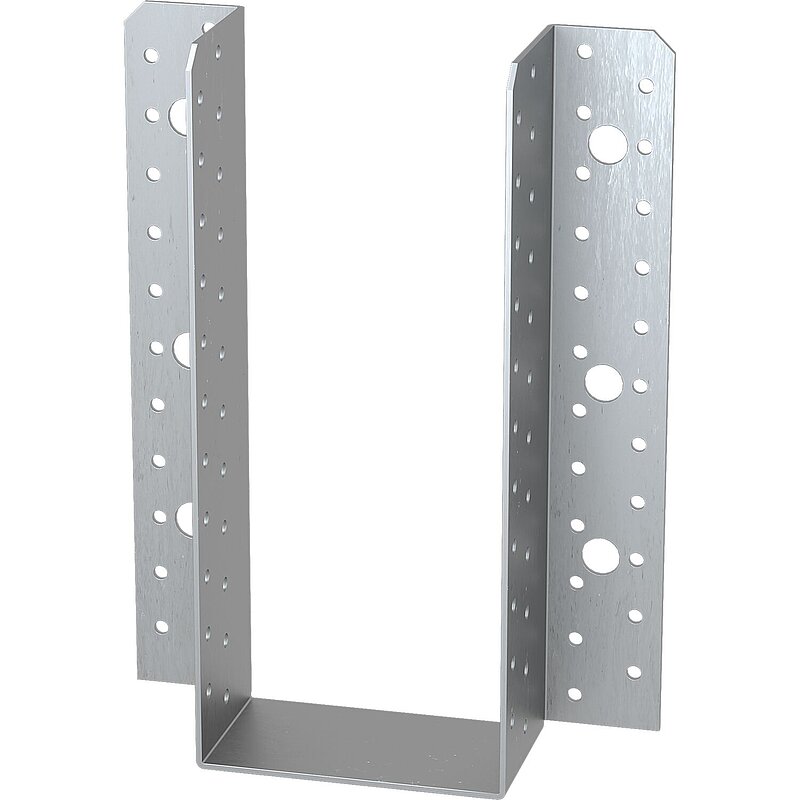 Extra starker Balkenschuh aus feuerverzinktem Stahlblech - 2,5mm; mit Kombilochung Ø 13mm.