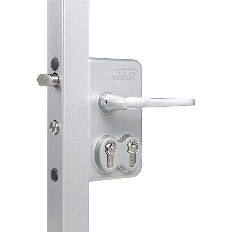 Gittertorschloss LDKZ5050 D1L, 2 PZW, für 50 mm Vierkantrohr, Alu silberfärbig