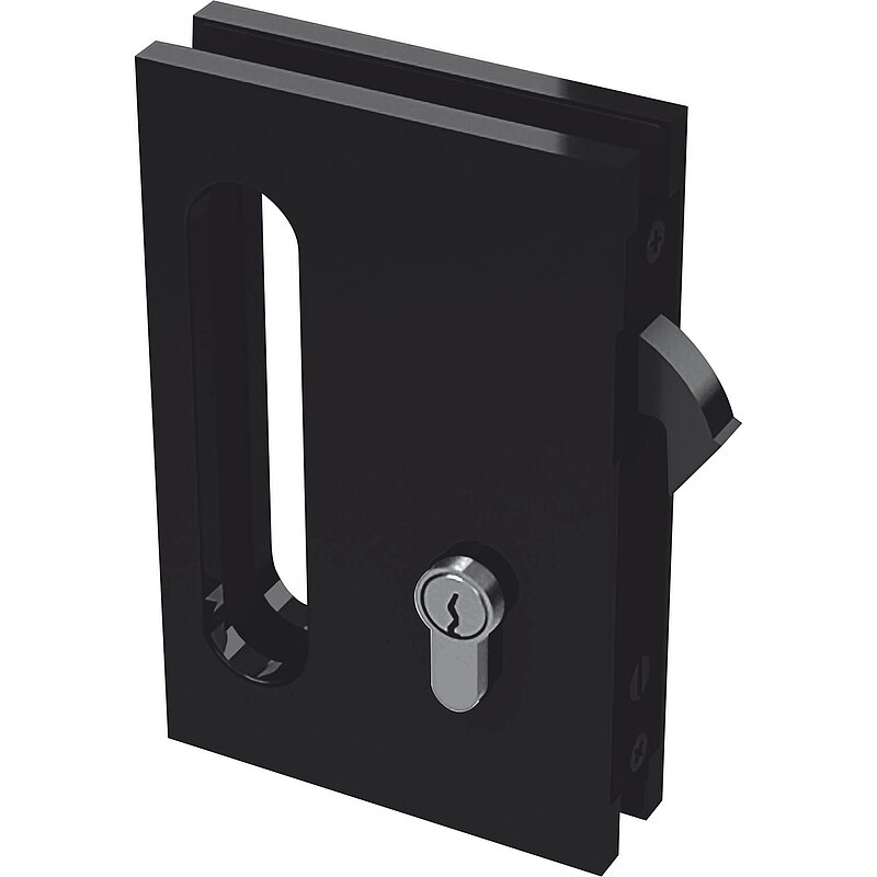 Glasschiebetürschloss B94 mit Bogenriegel, PZ, Aluminium schwarz