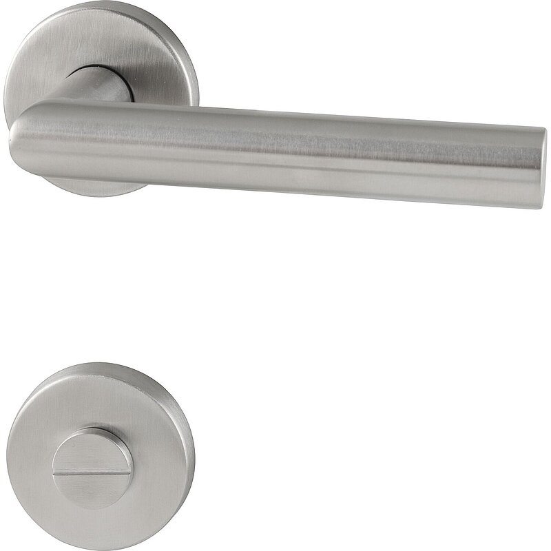 GRUNDMANN Drückergarnitur L-Form auf Rosette, WC, Edelstahl matt