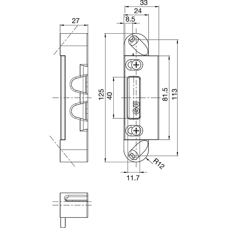 GU Lappenschließplatte für Secury zum Einfräsen, 125 x 24 x 27 mm, verstellbar