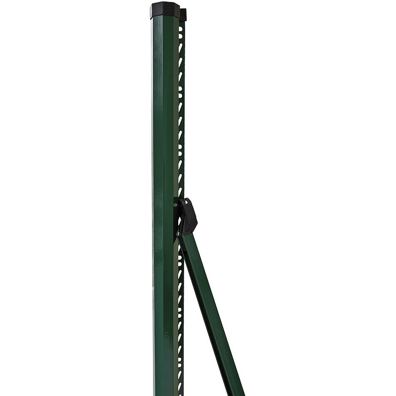 Aus Spezialprofil. Zum Betonieren in die Erde oder Aufschrauben. Die Strebe ist für ebenen Boden gerichtet und sollte im oberen 1/3 montiert werden.