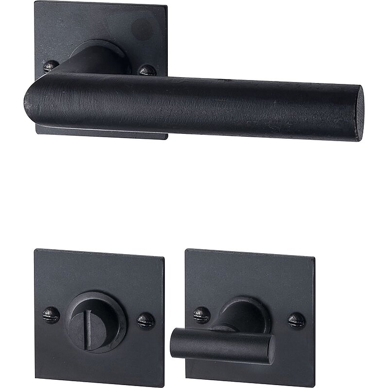 HALCÖ Drückergarnitur DAVOS - auf eckiger Rosette WC, TS-50, Schwarzstahl