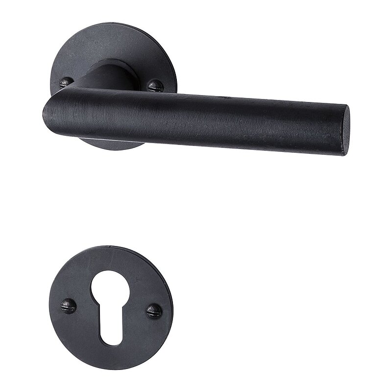 HALCÖ Drückergarnitur DAVOS - auf runder Rosette PZ, TS-50, Schwarzstahl