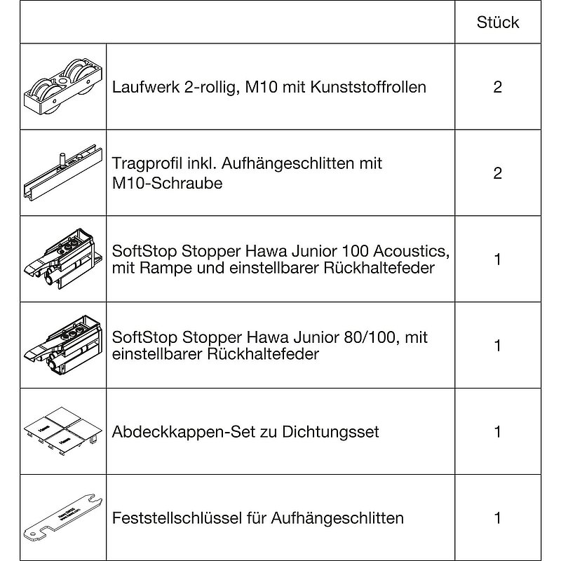Beschlagset HAWA-Junior 100/B Acoustics SoftStop
