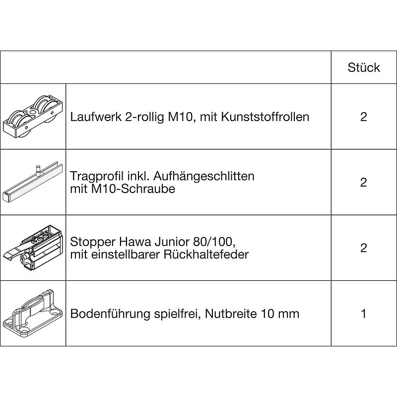 Beschlagset HAWA-Junior 100/B 2 FS Standard