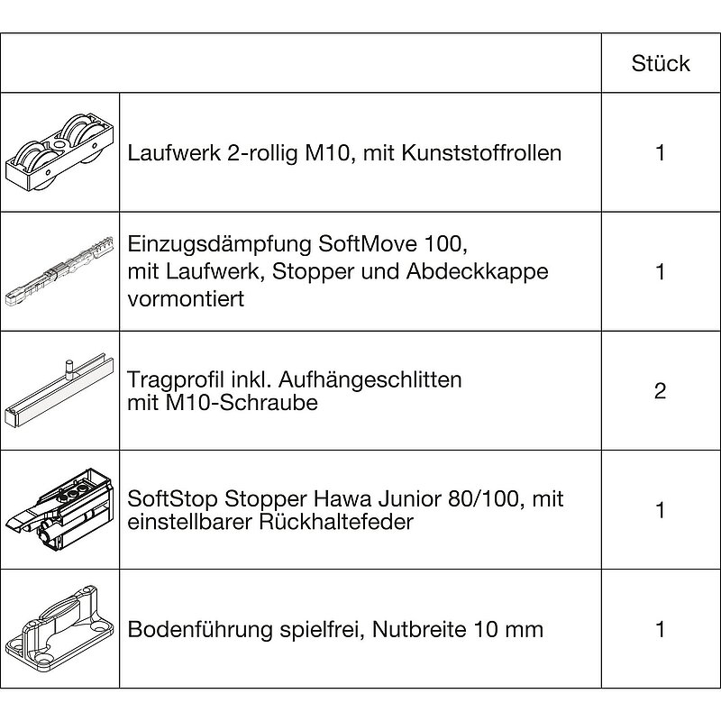 Beschlagset HAWA-Junior 100/B SoftStop/SoftMove