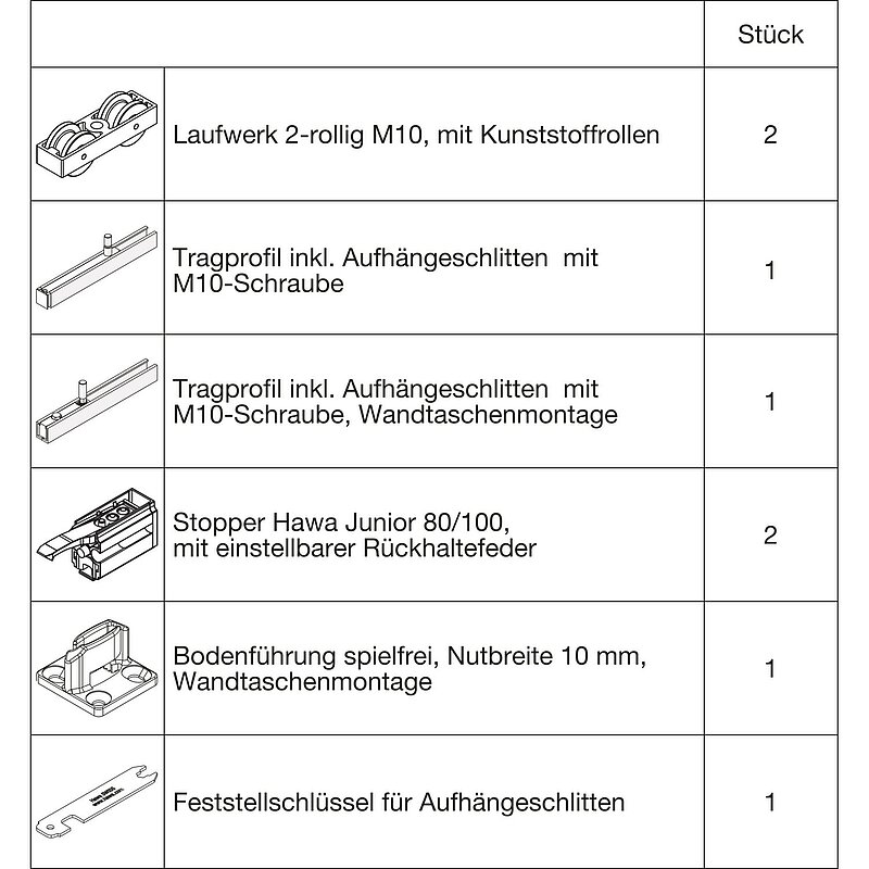 HAWA Junior 100/B-Pocket Beschlagset Holz 2 Fangstopper Standard