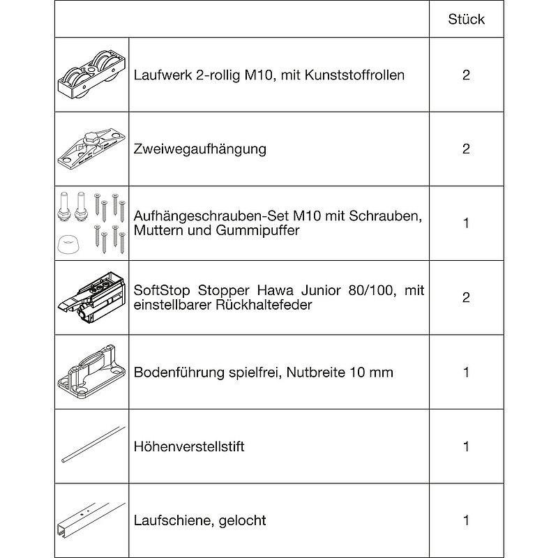 Beschlagset HAWA-Junior 100/Z SoftStop LS