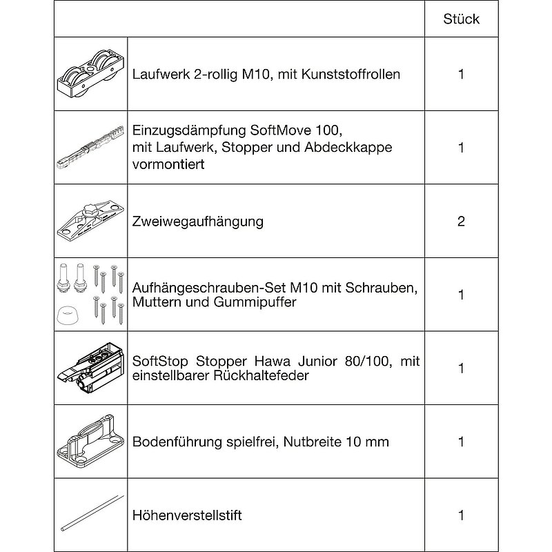 Beschlagset HAWA-Junior 100/Z SoftStop/SoftMove