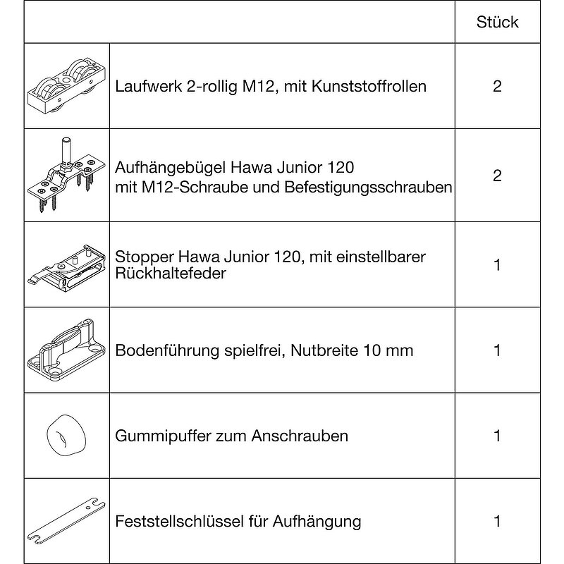 Beschlagset HAWA-Junior 120/A