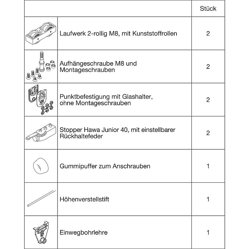 HAWA Junior 40/GP Beschlagset Glas ESG/VSG 8-12 mm ohne Laufschiene