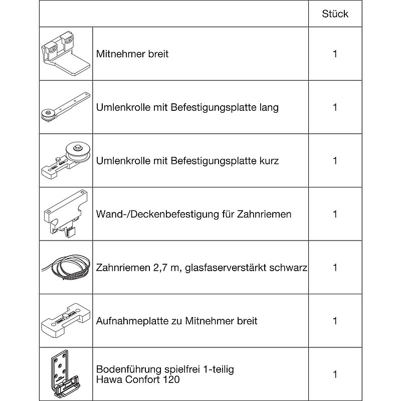 Hinweis: Erforderlicher Schiebetürbeschlag: 2 x Junior 100/Z.