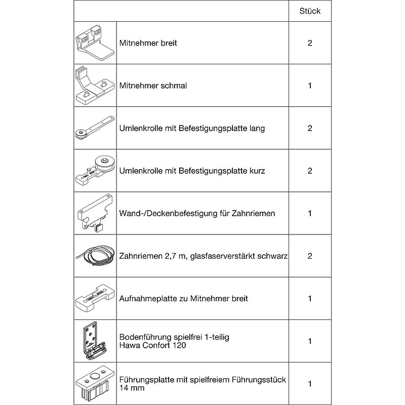 Hinweis: Erforderlicher Schiebetürbeschlag: 3 x HAWA Junior 100/Z.