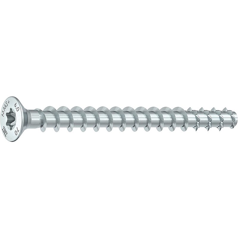 Der Schraubanker MULTI-MONTI®-plus (MMS-plus) ist eine Weiterentwicklung der Betonschraube MULTI-MONTI®. Er wird ohne Dübel direkt in ein vorgebohrtes Loch geschraubt und ist sofort belastbar. Die verstärkte Verzahnung an der Schraubenspitze schneidet beim Einschrauben ein Innengewinde in den Baustoff. Dadurch entsteht ein Formschluss, über den schließlich die Verankerung erfolgt. Dies vereinfacht nicht nur den Montagevorgang, sondern gewährleistet dem Handwerker ein hohes Maß an Anwendungssicherheit. Die Betonschraube MULTI-MONTI®-plus lässt sich randnah und ohne Drehmomentschlüssel verarbeiten, ist vollständig demontierbar und nach Prüfung wiederverwendbar.
