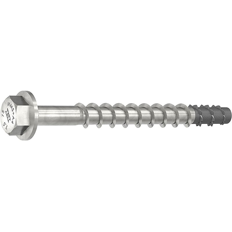 Der Schraubanker MULTI-MONTI®-plus A4 (MMS-plus A4) ist eine Weiterentwicklung der Betonschraube MULTI-MONTI® A4. Er wird ohne Dübel direkt in ein vorgebohrtes Loch geschraubt und ist sofort belastbar. Die verstärkte Verzahnung an der Schraubenspitze schneidet beim Einschrauben ein Innengewinde in den Baustoff. Dadurch entsteht ein Formschluss, über den schließlich die Verankerung erfolgt. Dies vereinfacht nicht nur den Montagevorgang, sondern gewährleistet dem Handwerker ein hohes Maß an Anwendungssicherheit. Die Betonschraube MULTI-MONTI®-plus A4 lässt sich randnah und ohne Drehmomentschlüssel verarbeiten und ist vollständig demontierbar.