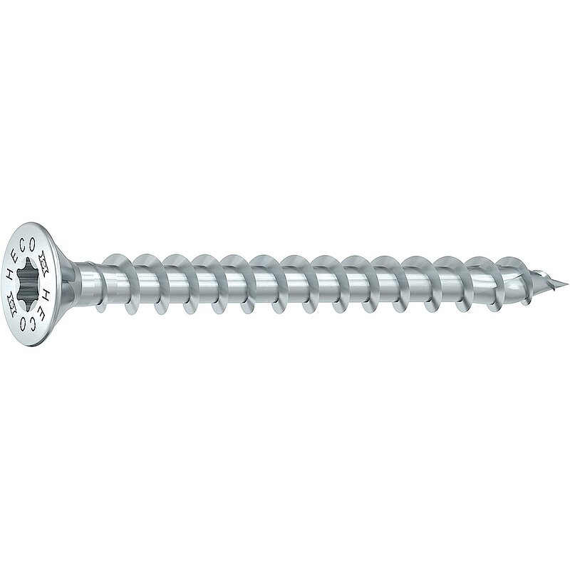- HECO-TOPIX-Spitze macht Vorbohren überflüssig, reduziert die Spaltgefahr des Holzes und ermöglicht enge Rand- und Achsabstände.