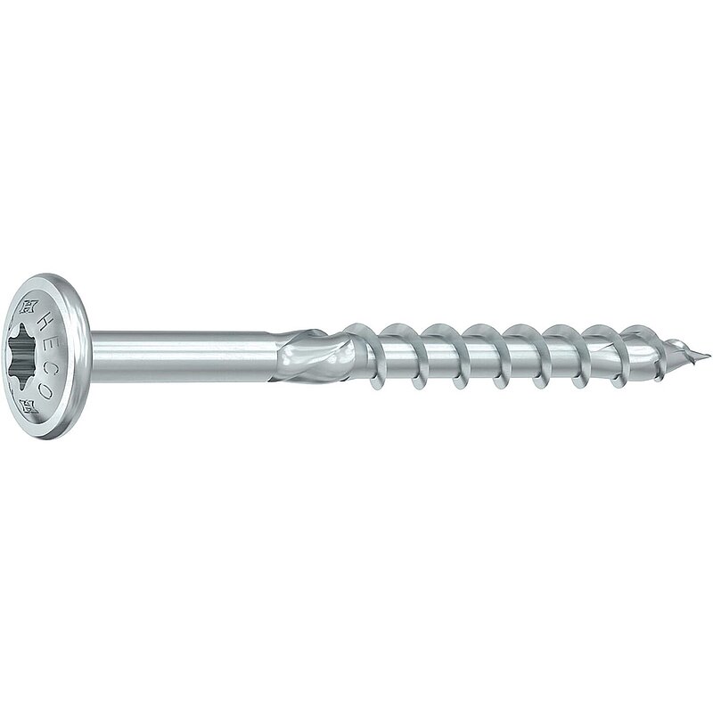 Die HECO-TOPIX-plus Tellerkopfschraube ist mit ihren Eigenschaften komplett auf den konstruktiven Holzbau ausgelegt. Sie verfügt über einen größeren Kopfdurchmesser und kann dank dieser vergrößerten Auflagefläche deutlich höhere Lasten als Senkkopfschrauben abtragen. Gleichzeitig reduziert sie die Anzahl der notwendigen Befestigungspunkte erheblich. Die Variante mit Teilgewinde verfügt über Schaftrippen, die das Einschraubdrehmoment reduzieren und eine spannungsfreie Verbindung schaffen. Für leichteres und schnelles Einschrauben sorgt die optimale Gewindesteigung. Zusätzlich gewährleistet die patentierte HECO-TOPIX-Spitze eine reduzierte Spaltwirkung und ermöglicht die schnelle Verschraubung ohne Vorbohren oder Vorsenken, egal ob mit weichem Bauholz oder harten Edelhölzern. Das Ergebnis: eine schnelle und sichere Montage mit bis zu 30 Prozent weniger Verarbeitungsaufwand.