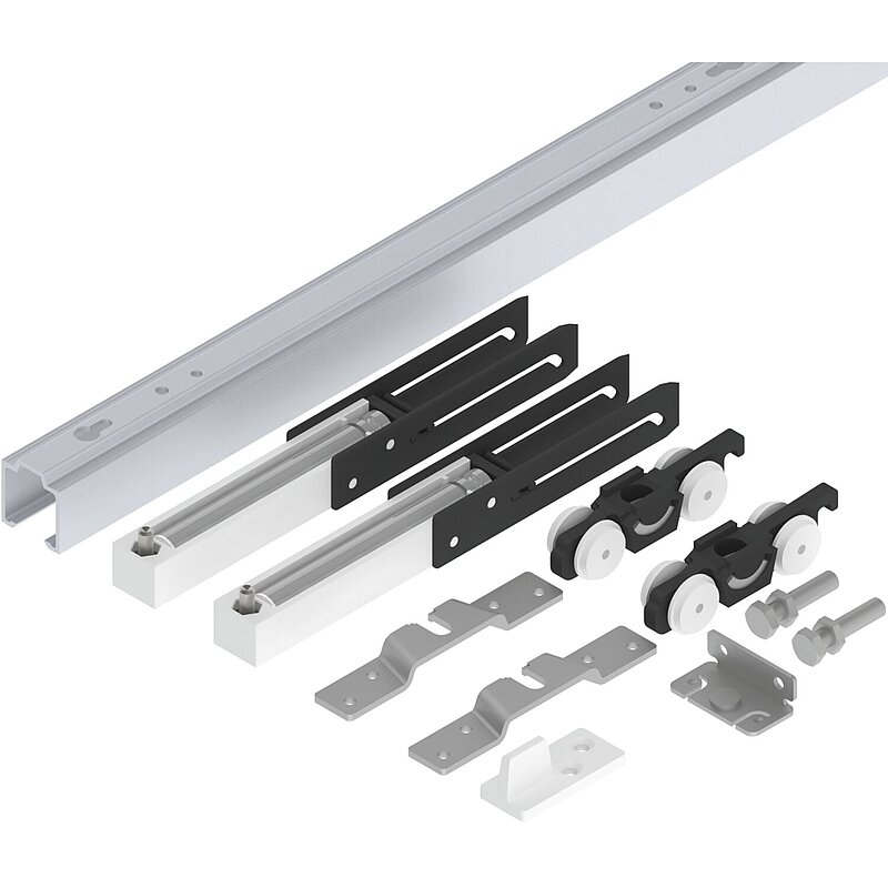 HELM 53 Beschlagset Wand Holz 50 kg Laufschiene L=1700 mm 2 Dämpfungen silber