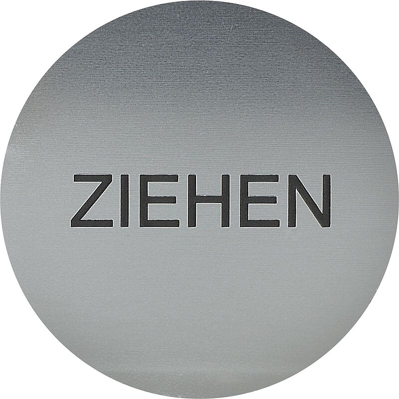 Hinweisschild ZIEHEN, Durchmesser 60 mm, Kunststoff Edelstahl-Effekt