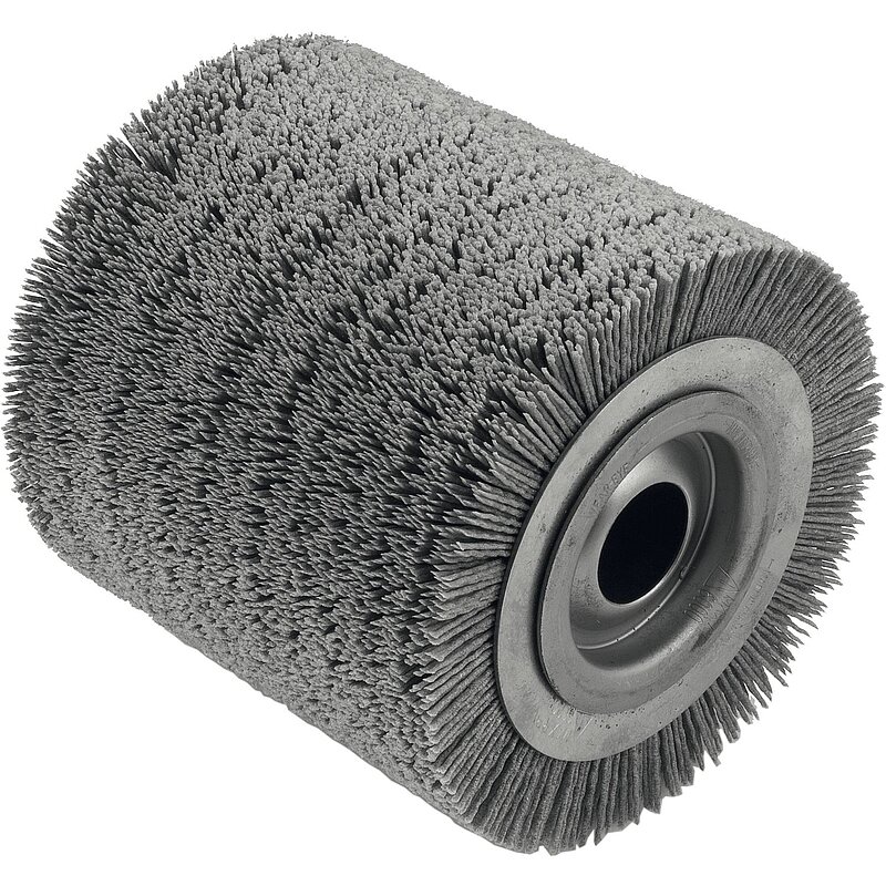 Nylonbürste mit eingebettetem Schleifkorn. Die mit LD-Bürsten vorbehandelten Hölzer werden vor dem Beizen bzw. Lackieren von hochstehenden Fasern befreit.