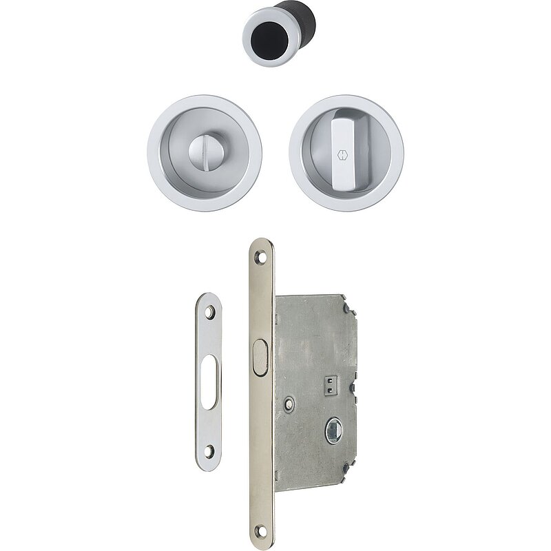 HOPPE Schiebetürmuschel Set 4920 - WC mit Schloss, rund, verchromt satiniert