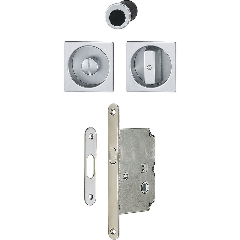 HOPPE Schiebetürmuschel Set 4921 - WC mit Schloss, eckig, verchromt matt
