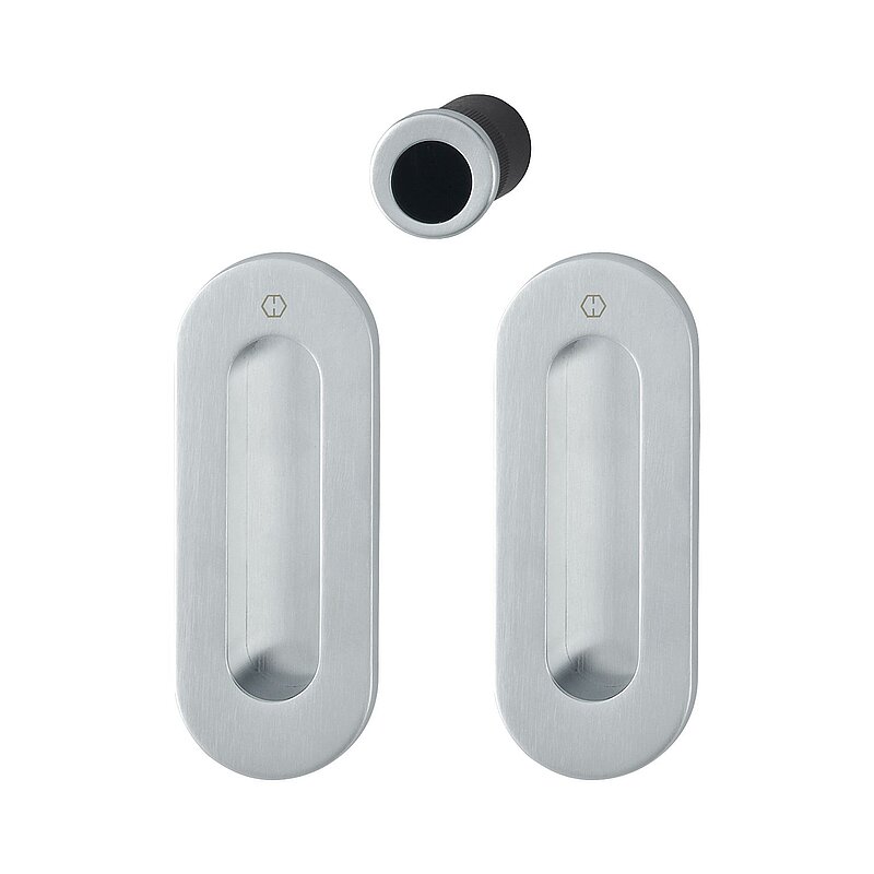 HOPPE Schiebetürmuschel Set M472 - BL, ovale Rosette, Messing verchromt matt