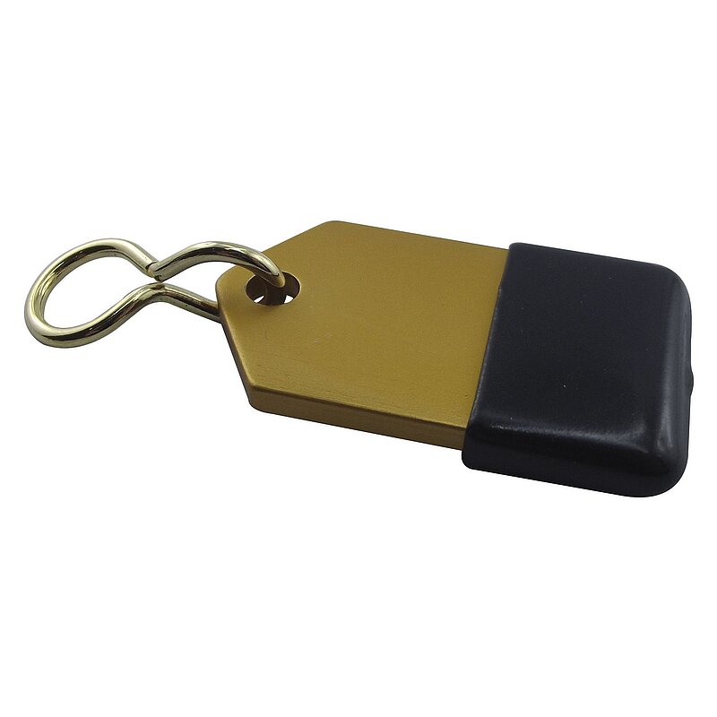 Hotelschlüsselanhänger - flach, 50 mm, mit Gummi, Aluminium gold eloxiert