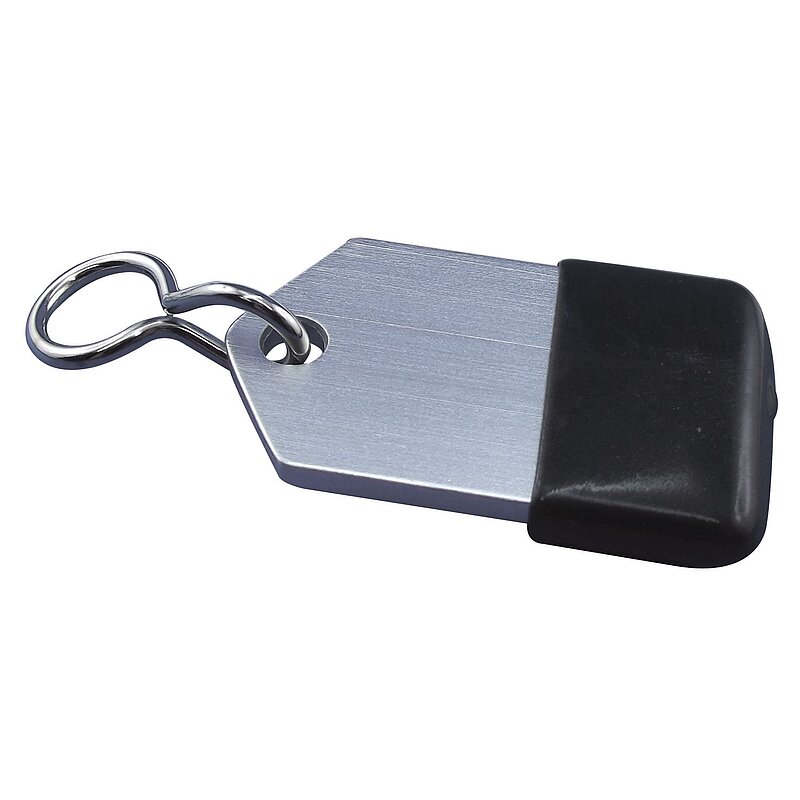 Hotelschlüsselanhänger - flach, 50 mm, mit Gummi, Aluminium silber eloxiert