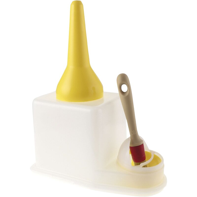 Praktischer Sparbehälter für den Auftrag von Leimen, Farben usw. Aus langlebigem Kunststoff mit Pinsel.