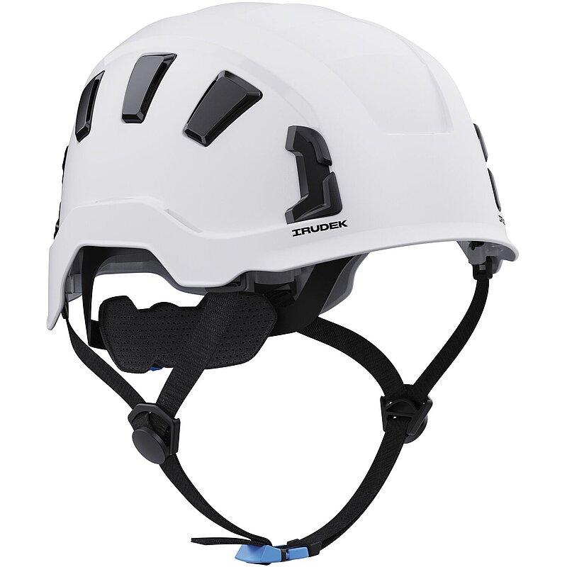 Der Helm wird mit einer blauen Schnalle (EN397) und mit einer schwarzen Schnalle (EN12492) ausgeliefert