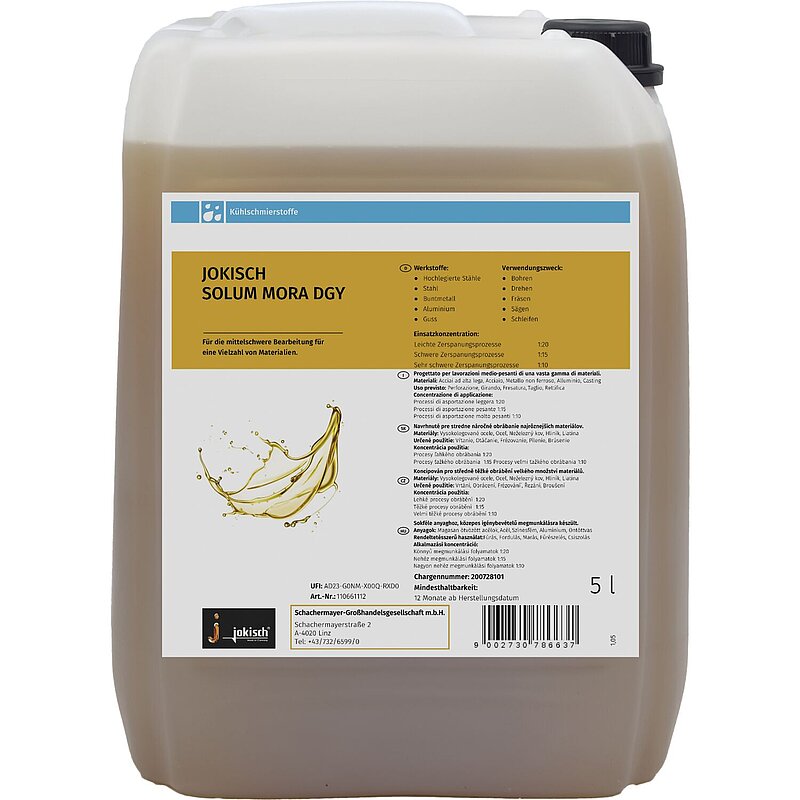 Jokisch Solum Mora DGY ist ein universell einsetzbarer, wassermischbarer Kühlschmierstoff, der hervorragend für die allgemeine Bearbeitung geeignet ist.