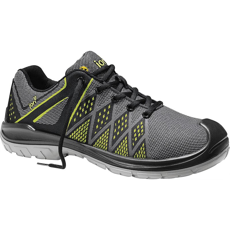 Sportlicher Auftritt. Der FLEX green Low ESD S1P zieht die Blicke auf sich. Der sportlich-grüne Sicherheitsschuh aus der JORI Kollektion mit auffälligem Muster auf der Seite des Schafts überzeugt in Sachen Sicherheit und Optik. Das widerstandsfähige Textilmaterial des Schaftes und das atmungsaktive Textilfutter des Schuhs sorgen für einen angenehmen Tragekomfort. Die Stahlkappe und die metallfreie Durchtritthemmung wehren Gefahren des Arbeitsalltages erfolgreich ab. Der hochgezogene PU-Spitzenschutz sorgt nicht nur für eine Sportschuhoptik, sondern bewahrt den Schuh selber vor frühzeitiger Abnutzung und sichert die Langlebigkeit des Schuhs. Die PU/PU-Laufsohle eignet sich auf glatten Hallenböden, ob in der Produktion oder in der Werkstatt. Erhältlich ist der lederfreie und ESD-fähige Schuh in 40 bis 48.