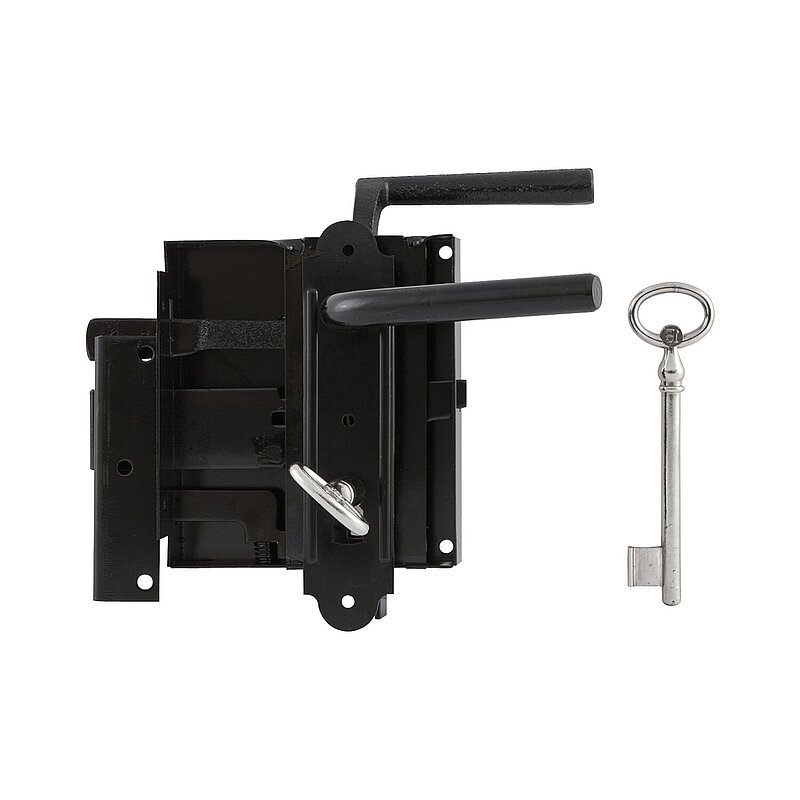 Kastenschloss, links, DM 60, 100 x 116 mm, Stahl schwarz lackiert