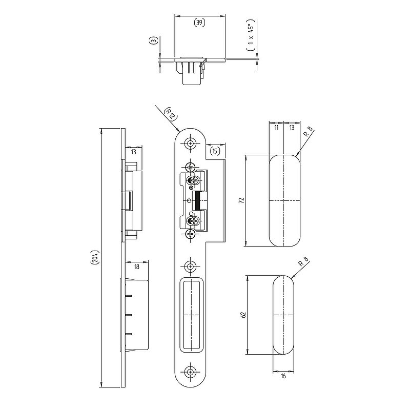 Schließblech einfräsbar für Falle und Riegel mit AT-Stück 115