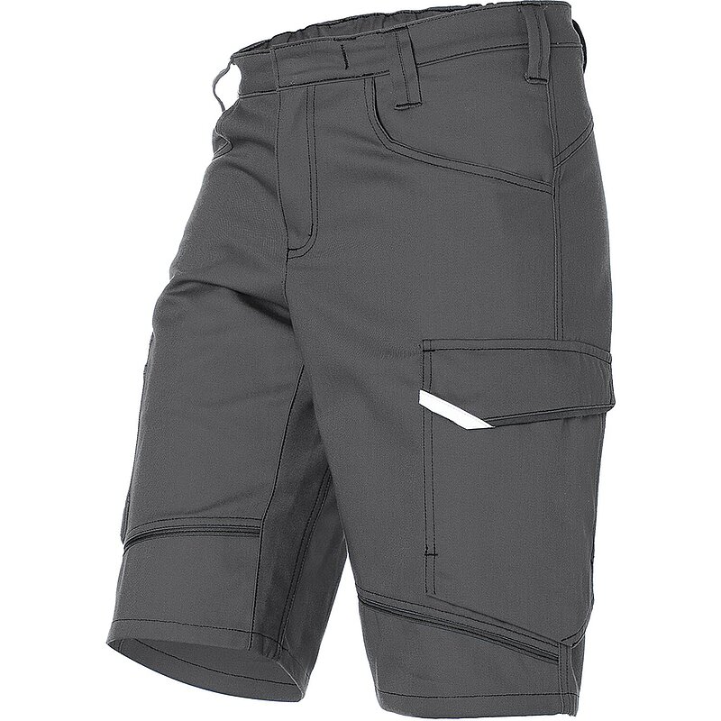 Kontrast-Elemente: Einsatz oberhalb Knie, Seiteneinsatz, Gürtelschlaufe am Bund hinten. Reflex-Elemente: oberhalb Knie. Ergonomische Linienführung für mehr Bewegungsfreiheit, 2 Seitentaschen, 2 Gesäßtaschen, rechts mit Patte und Druckknopf. Rechts: ergonomisch positionierte Meterstabtasche auf Seitennaht. Links: Schenkeltasche mit Patte und Druckknopf, aufgesetzte Stifttasche, integrierte Smartphonetasche, Schlitz mit Reißverschluss, Bund mit Gummizug, Belastungspunkte mit Riegeln gesichert.