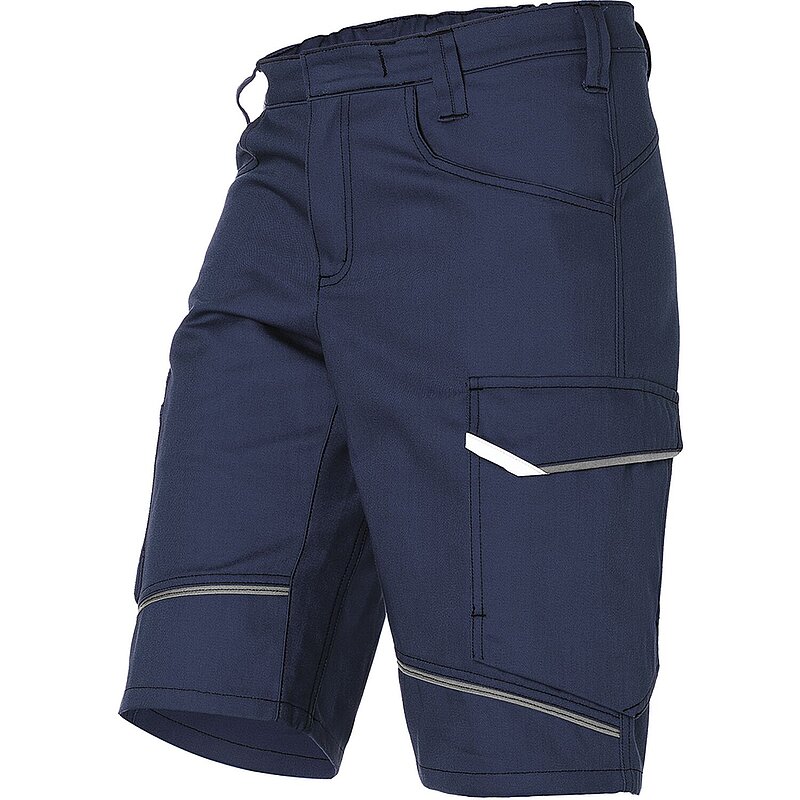 Kontrast-Elemente: Einsatz oberhalb Knie, Seiteneinsatz, Gürtelschlaufe am Bund hinten. Reflex-Elemente: oberhalb Knie. Ergonomische Linienführung für mehr Bewegungsfreiheit, 2 Seitentaschen, 2 Gesäßtaschen, rechts mit Patte und Druckknopf. Rechts: ergonomisch positionierte Meterstabtasche auf Seitennaht. Links: Schenkeltasche mit Patte und Druckknopf, aufgesetzte Stifttasche, integrierte Smartphonetasche, Schlitz mit Reißverschluss, Bund mit Gummizug, Belastungspunkte mit Riegeln gesichert.