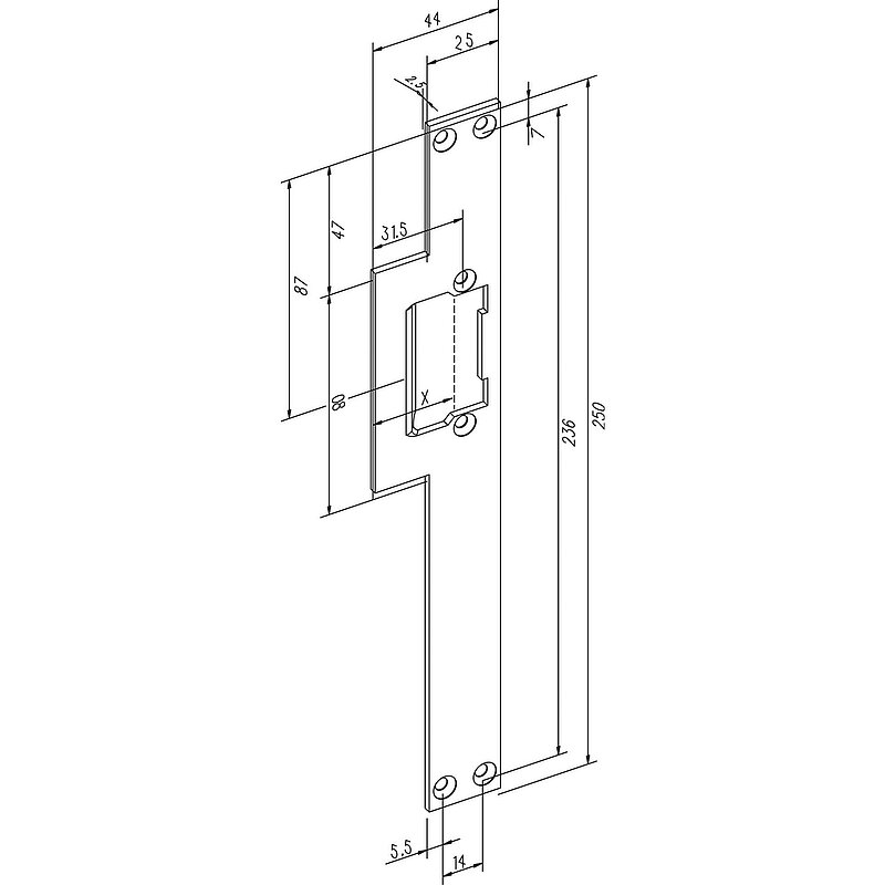 Lappenschließblech Lap lang, eckig ohne Riegelausschnitt