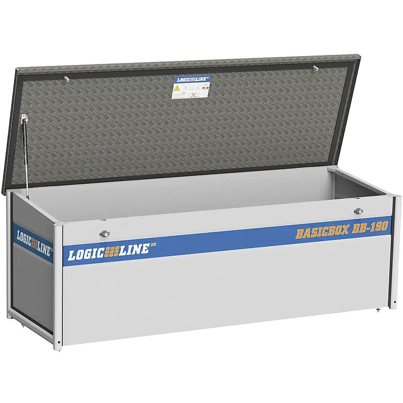 Neben einem soliden Fundament in Form einer geschraubten Rahmenkonstruktion aus Aluminium-Profilen besticht die BasicBox mit praktischen Eigenschaften, zu denen die Gasfeder-Deckelhalterung oder der rutschhemmende Boden zählen. Mit der umlaufenden Keildichtung ist die Pritschenbox zudem regen- und spritzwasserdicht. Auch Werkzeuge und Arbeitsgeräte mit längeren Stielen, wie Besen, Hacken, Schaufeln oder Rechen können in den Modellen mit Stauraum oder Stauraum XL geordnet aufbewahrt werden. Durch die Öffnung nach unten muss man keine Schimmelbildung befürchten.