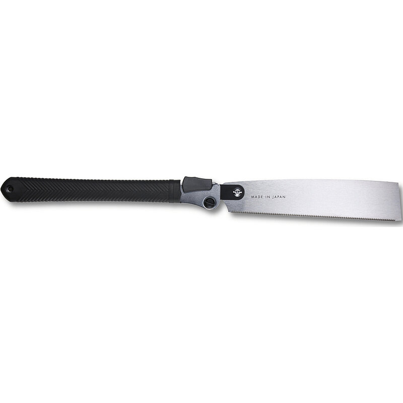 Japanische Handsäge mit hochwertigem Kunststoffgriff. Sägeblatt einklappbar, dadurch platzsparend bei gleichzeitigem Schutz der Zahnung. Feinsäge ohne Rücken, für Ablängarbeiten, tiefe Schnitte, durch flexibles Blatt auch für Arbeiten an schwer zugänglichen Stellen geeignet.