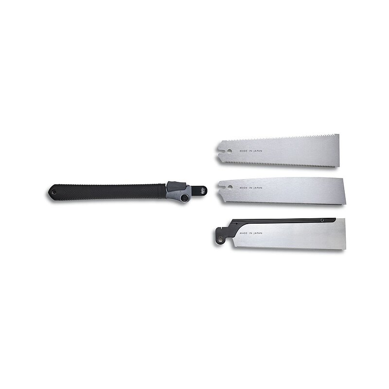 Die schon weit verbreiteten japanischen Handsägen funktionieren ausschließlich auf Zug. Dadurch können die Sägeblätter dünner und härter ausgeführt werden. Dies wiederum bedeutet geringere Schnittkräfte und längere Standzeit und ermöglicht Schnitte mit noch nicht gekannter Präzision. Für größere Stabilität reicht bei diesen Sägen die Sägeblattaufnahme weiter in den Griff. Die Wechselblattsäge der japanischen Profis.