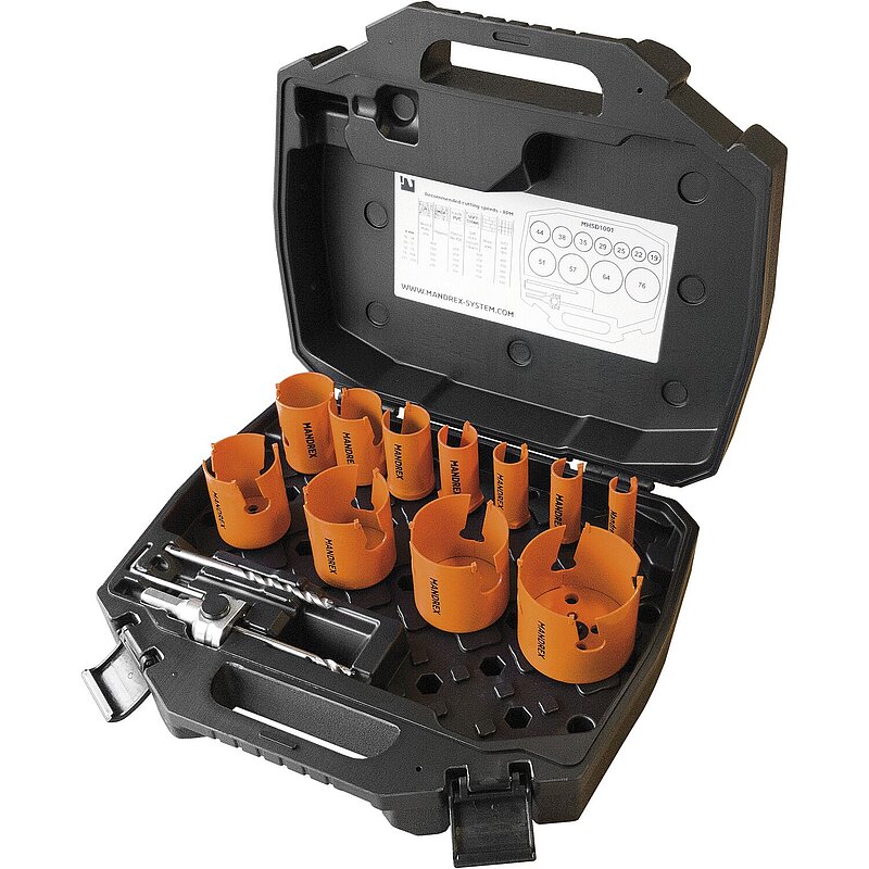 Mandrex Lochsägen-Kits sind in professionellen, leicht zu tragenden und hochwertig gepolsterten Koffern erhältlich.