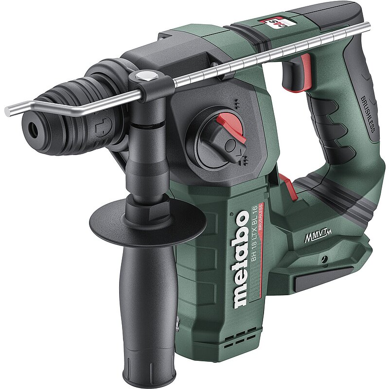 Sehr leichter, kompakter Akku-Hammer mit Brushless-Motor für ermüdungsarmes Bohren in jeder Arbeitsposition. Maximale Bohrleistung, Effizienz und Lebensdauer durch Brushless-Technologie und Hochleistungsschlagwerk. 2 Funktionen: Hammerbohren und Bohren. Metabo VibraTech (MVT): gesundheitsschonendes, ermüdungsarmes Arbeiten auch im Dauereinsatz. Vario-Tacho-Constamatic (VTC)-Vollwellenelektronik zum Arbeiten mit materialgerechten Drehzahlen, die unter Last konstant bleiben. Elektronische Sicherheitsabschaltung des Motors beim Blockieren des Einsatzwerkzeugs zum sicheren Arbeiten. LED-Arbeitslicht für optimale Sicht auf die Bohrstelle.