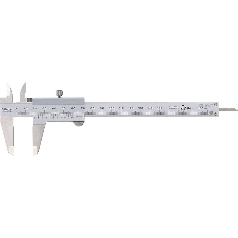 Schiene und Schieber aus gehärtetem, nichtrostenden Stahl. Maßstab und Nonius mattverchromt, erhöhte Führungsbahnen.