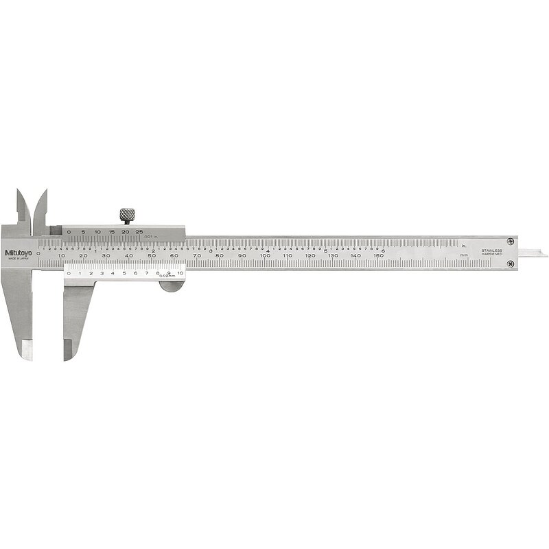 Schiene und Schieber aus gehärtetem, nichtrostenden Stahl. Maßstab und Nonius mattverchromt, erhöhte Führungsbahnen.