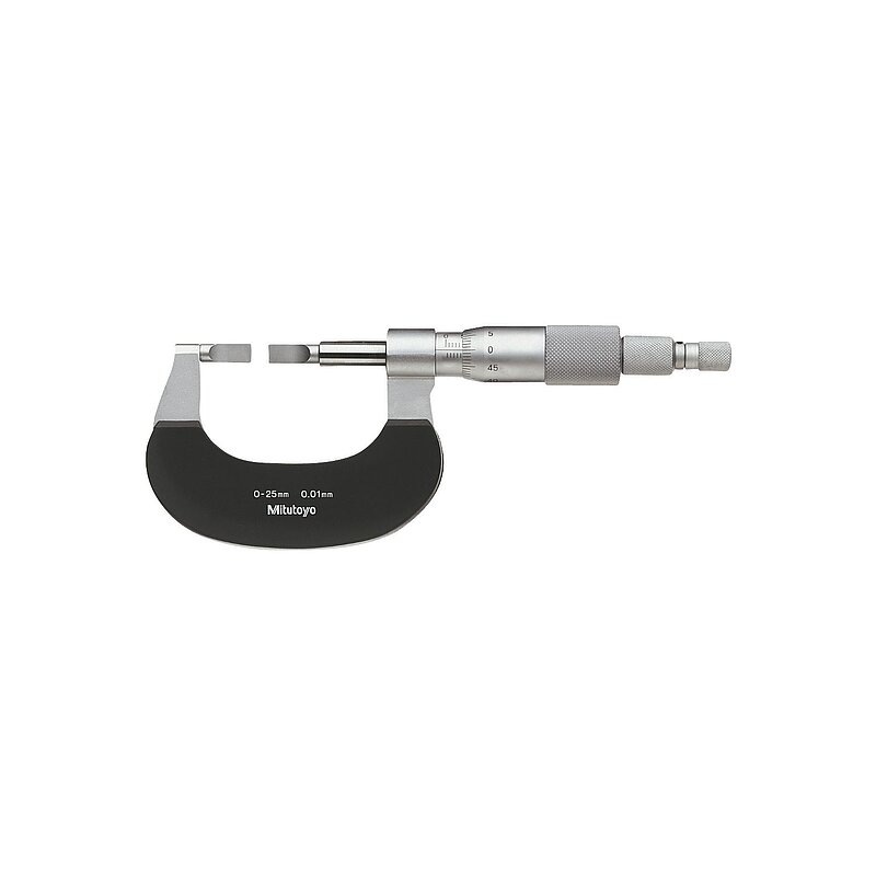 Mit nichtdrehender Spindel. Zum Messen von schmalen Außennuten. Skalentrommel und Skalenhülse mattverchromt.